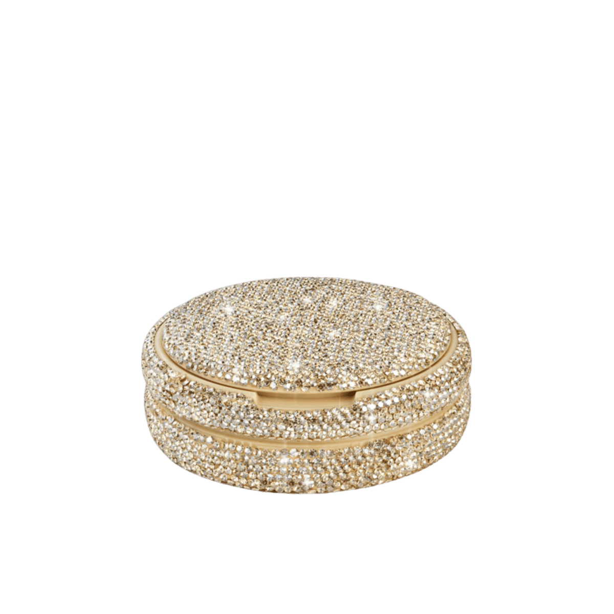 The stones are set by hand to cover the entire box in rhinestones. The inner material of the glitter box is in "food approved" plastic with an outer casing of hand-set rhinestones.
